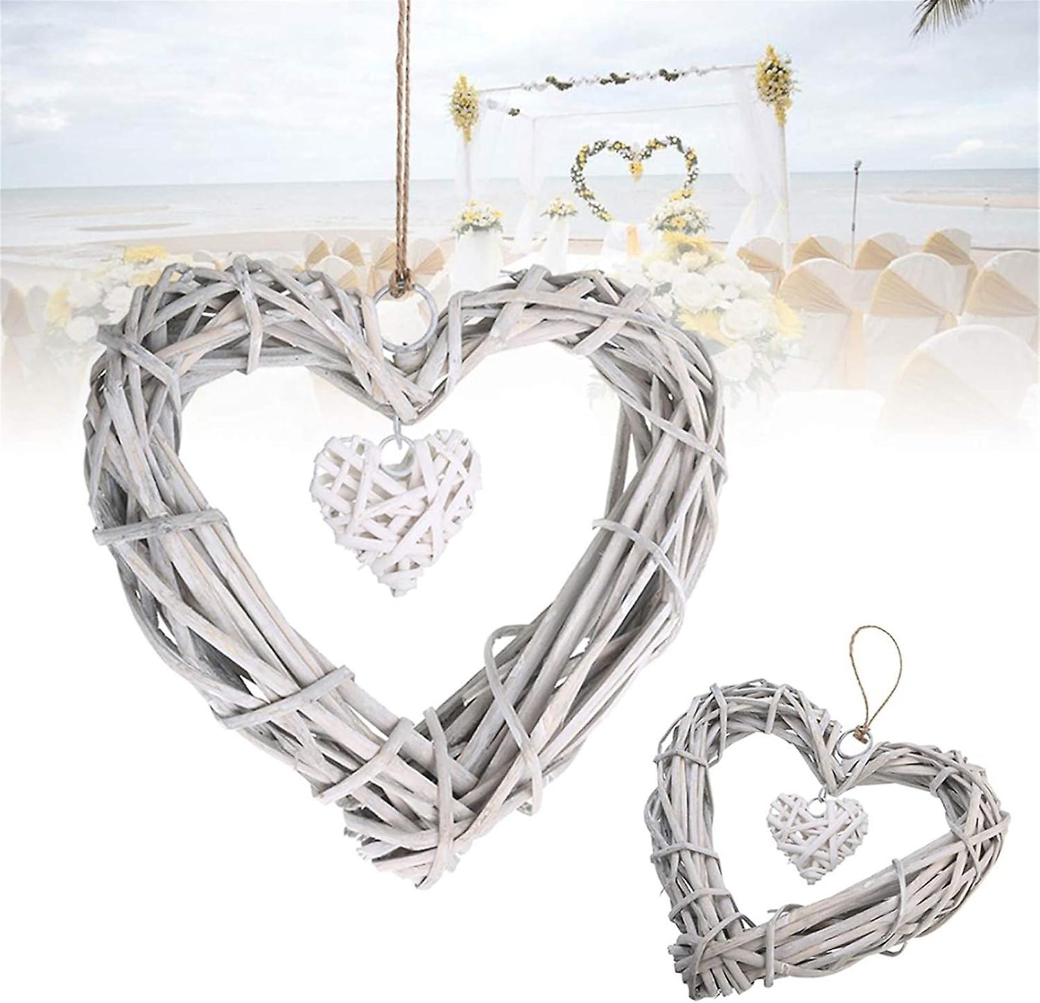 Wicker Heart Wreath, Gray White Artificial Wreaths DIY Heart Wicker for Wedding Birthday Party Wall