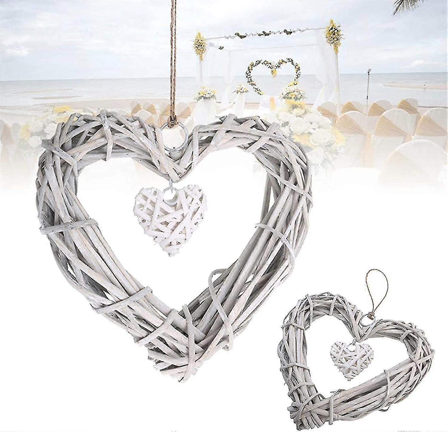 Wicker Heart Wreath, Gray White Artificial Wreaths Diy Heart Wicker For Wedding Birthday Party Wall Hanging Decoration