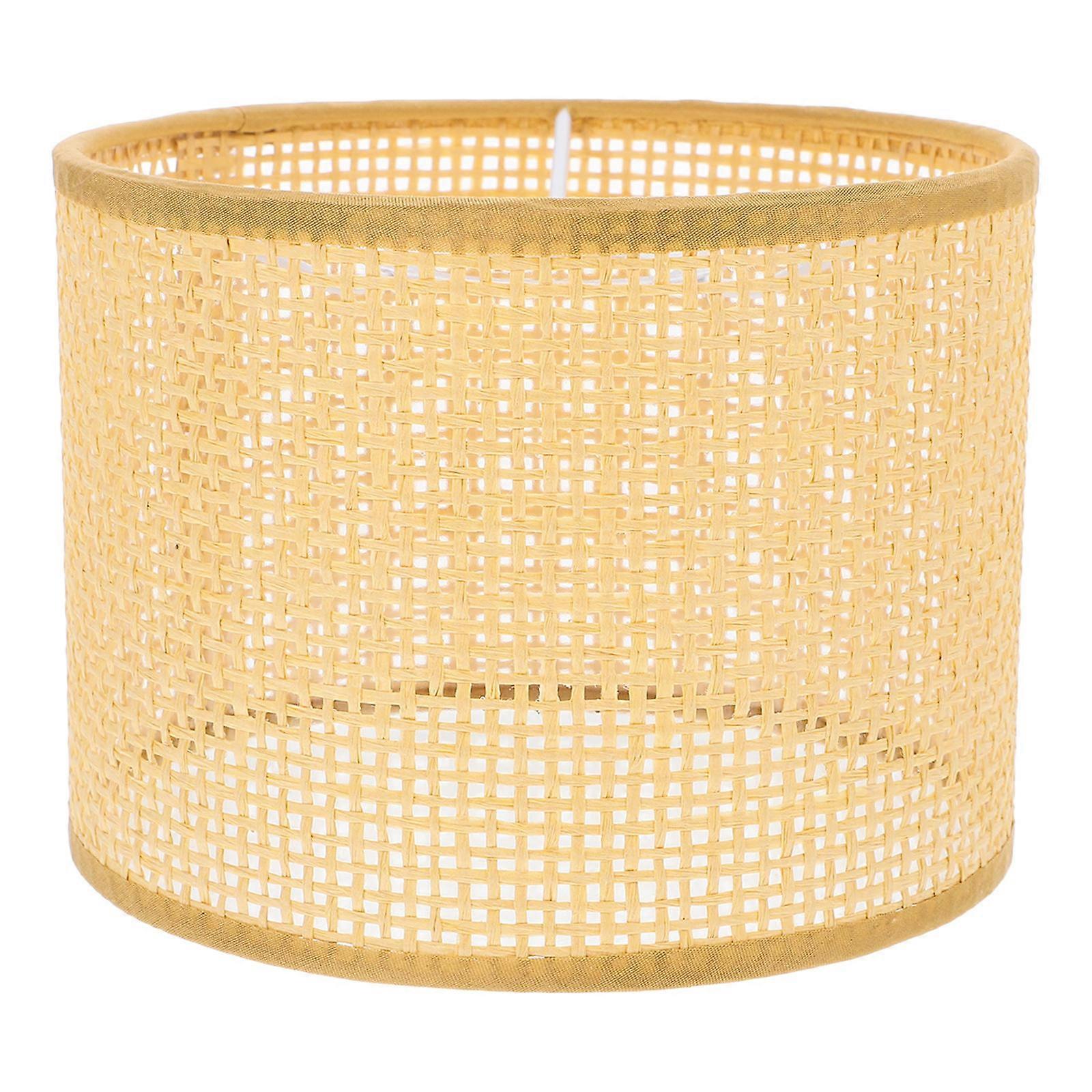 Wicker Table Lampshade Rattan Hand Woven Lamp Cover Square Grid Khaki 16.00X16.00X12.00CM Light Softening 1Set