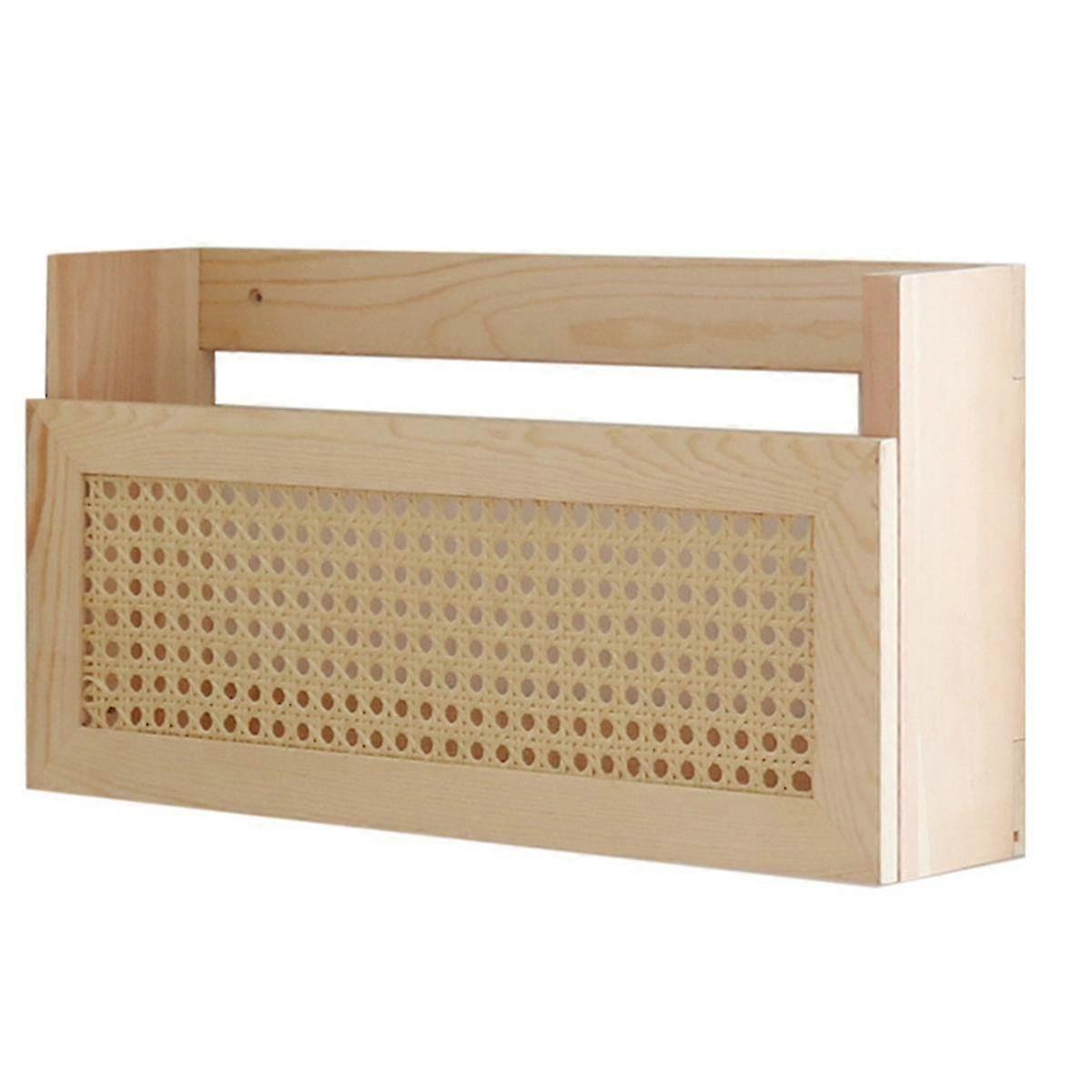 Wooden Magazine Wall Rack with Rattan File Holder Hanging File Rattan Bookcase Wooden Mail Organize