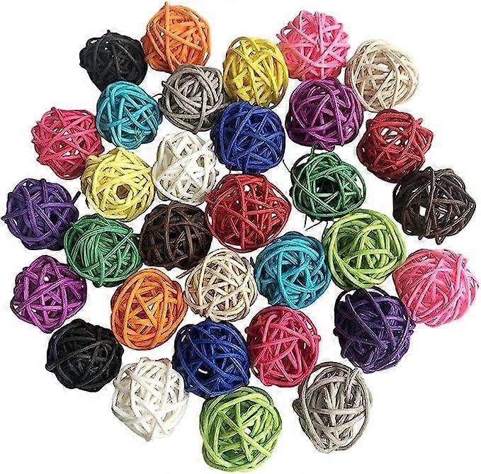 Rattan Balls 32 Pack 3cm Wicker Ball Birds Toy Parrot Parakeet Chewing Toys Pet Cage Bite Toys Decorative Ball Orbs Crafts random color