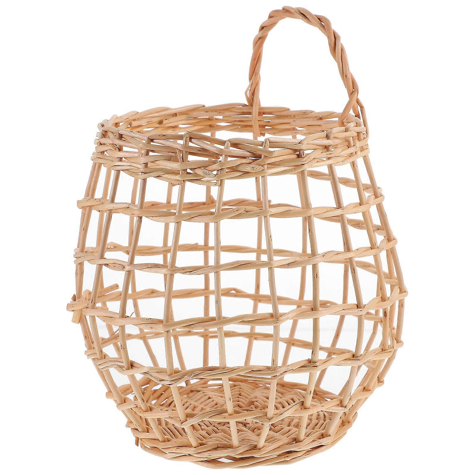 Rattan Woven Hanging Basket Wall Mount Egg Garlic Holder Hollow Design Fresh Flowers Vegetables Storage Rustic Home Decor Accessory