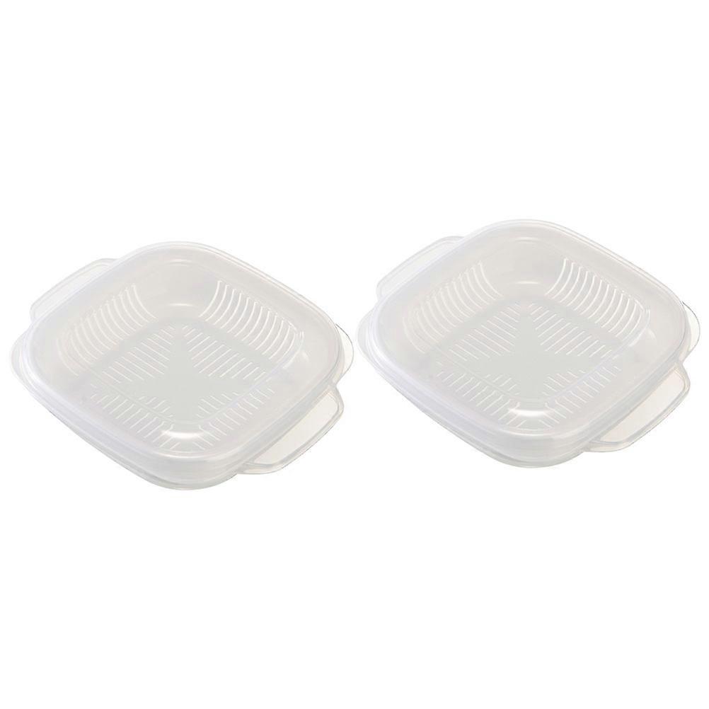 Rice Storage Container Fresh Keeping Lunch Box Portable Microwave Safe 15.5X13.1X3.9CM White 2Pcs
