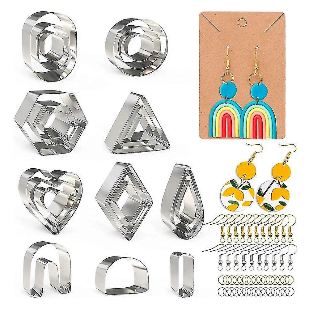 [Clean Cut]: Made of high-quality Metal, with sharp edges and clean cuts. The top is made of double-layer stainless steel rolled edges to protect your hands. Even beginners can easily make beautiful polymer clay earrings.[DIY Gift]: Our package also includes accessories for making earrings, such as ear clips, ear hooks, ear plugs, split rings and self-sealing bags. You can give your creations as gifts to your family and friends on Christmas, Valentine's Day, Birthday, Mother's Day and other holidays. You can even sell your own creations to clients.[Wide use]: Food grade stainless steel knives are not only suitable for clay, but also for polymer clay, ceramics, metal clay, biscuits, fondant, vegetables, etc.[Tips]: You can use different shapes and sizes of tool combinations to make more shapes. Use your imagination and the finished product will be eye-catching Before using the cutter, you can cover the clay with a plastic wrap, which will make it easier for you to remove the finished product.Type: AMaterial:Metalcolour:SilverPackage Contents:1 set x clay earring cuttersOnly the above package content, other products are not included.Note: Light and different displays may cause the color of the item in the picture a little different from the real thing. The measurement allowed error is +/- 1-3cm.