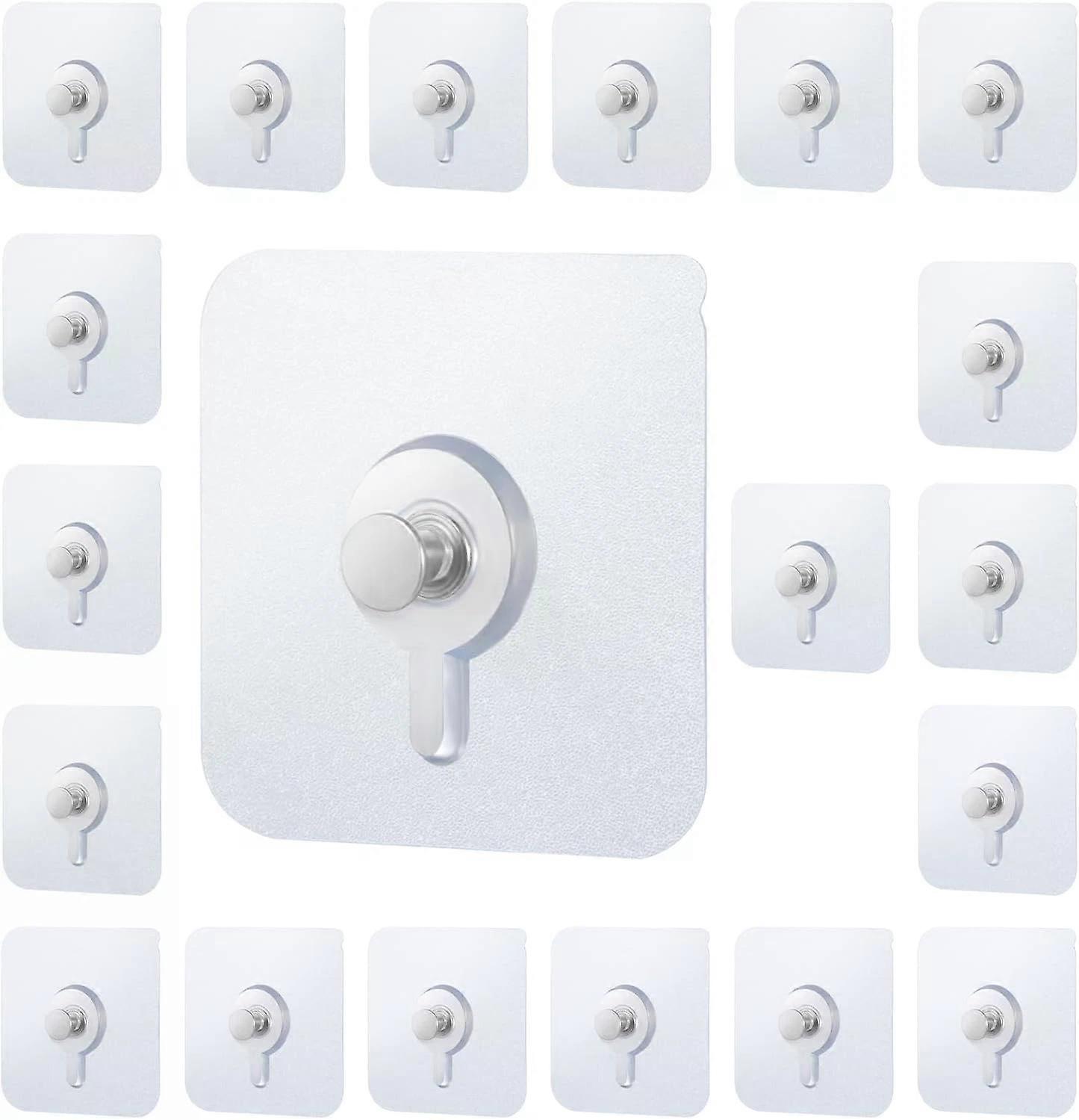 Adhesive Hooks, 20 Pack Heavy Duty Drill Free No-Trace Sticker for Hanging on Wall
