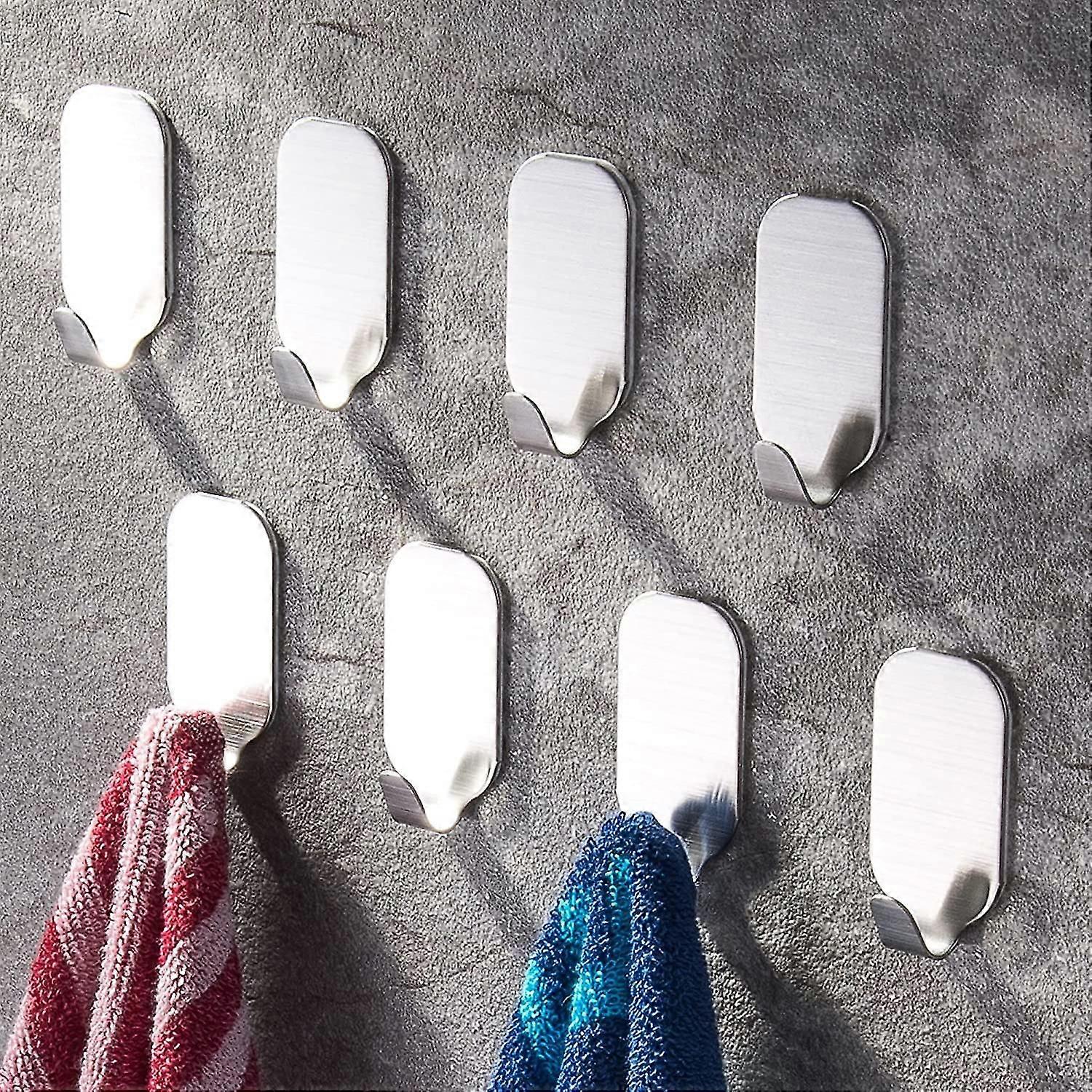 Adhesive Hook, 8 Pieces Bathroom Towel Hooks Without Drilling Stainless Steel Towel Hook