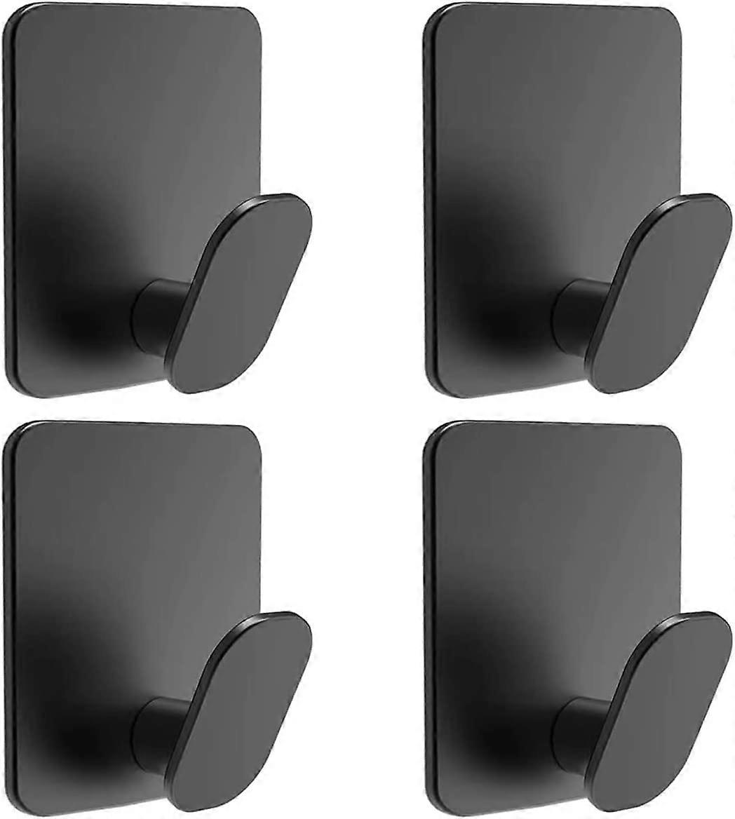 Adhesive Wall Hooks,4 PCS Black Towel Hooks,Coat Hooks, Stainless Steel Hook,Bathrooms Kitchen Utility Hooks.Hooks for Hanging Clothes, Hats, Pants,Sh
