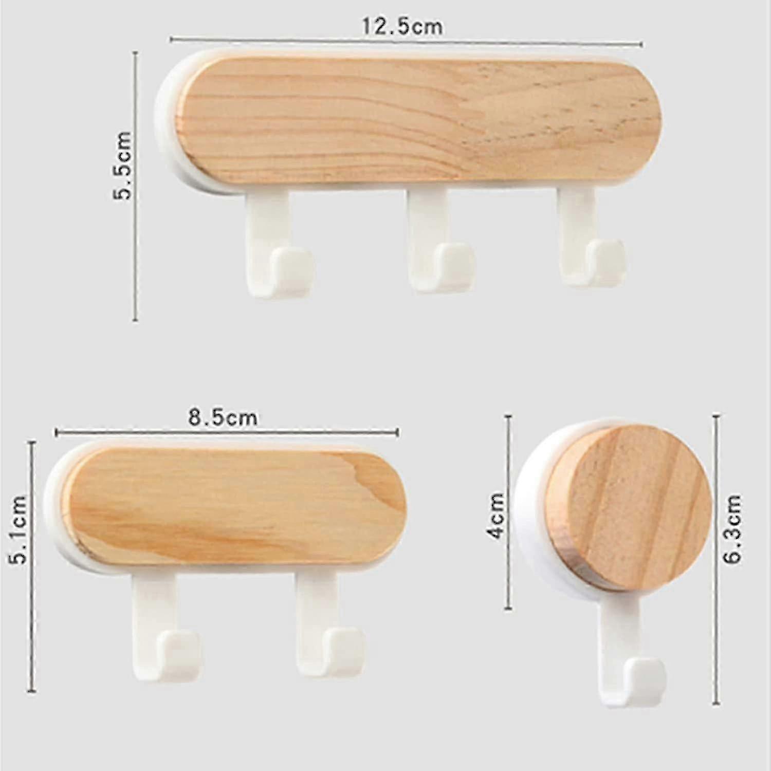 Self-Adhesive Wooden Wall Hooks - 3-Piece Set for Keys, Towels, Clothes (White)