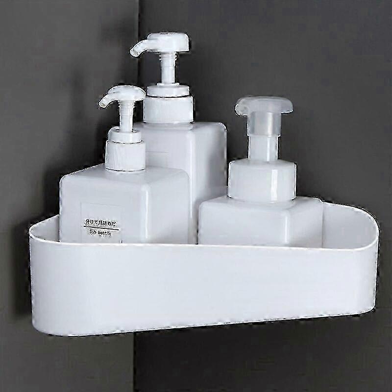 Strong and durable non-marking adhesive, no nails or drills required, waterproof, resists peeling, suitable for any smooth surface. Hollow drain design prevents water accumulation, keeps contents dry. Features a protective railing to help prevent items from falling off. Easy to install with self-adhesive mounting—simply stick the bathroom shelf in place. This no-drill shower shelf maximizes storage space in bathroom and kitchen corners. Includes: 1 x Bathroom Shelf