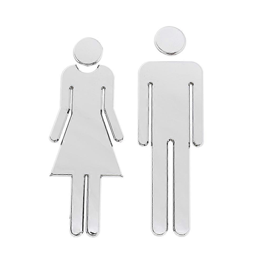 Self-Adhesive Toilet Sticker Elegant Design Restroom Sign for School Silver 12.5X4X0.4 Cm 2Set