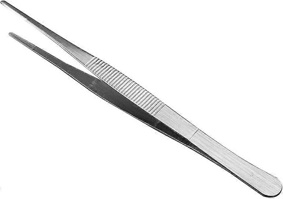 Stainless Steel Kitchen Tweezers Tongs with Precision Serrated Tips - 10 Inch Straight Food Tongs for Cooking