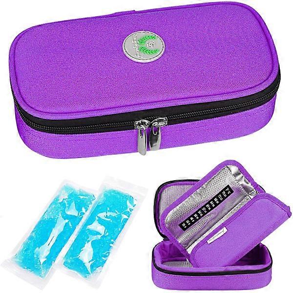 Insulin case for diabetes - Medical insulated portable bag with 2 ice packs (Purple)