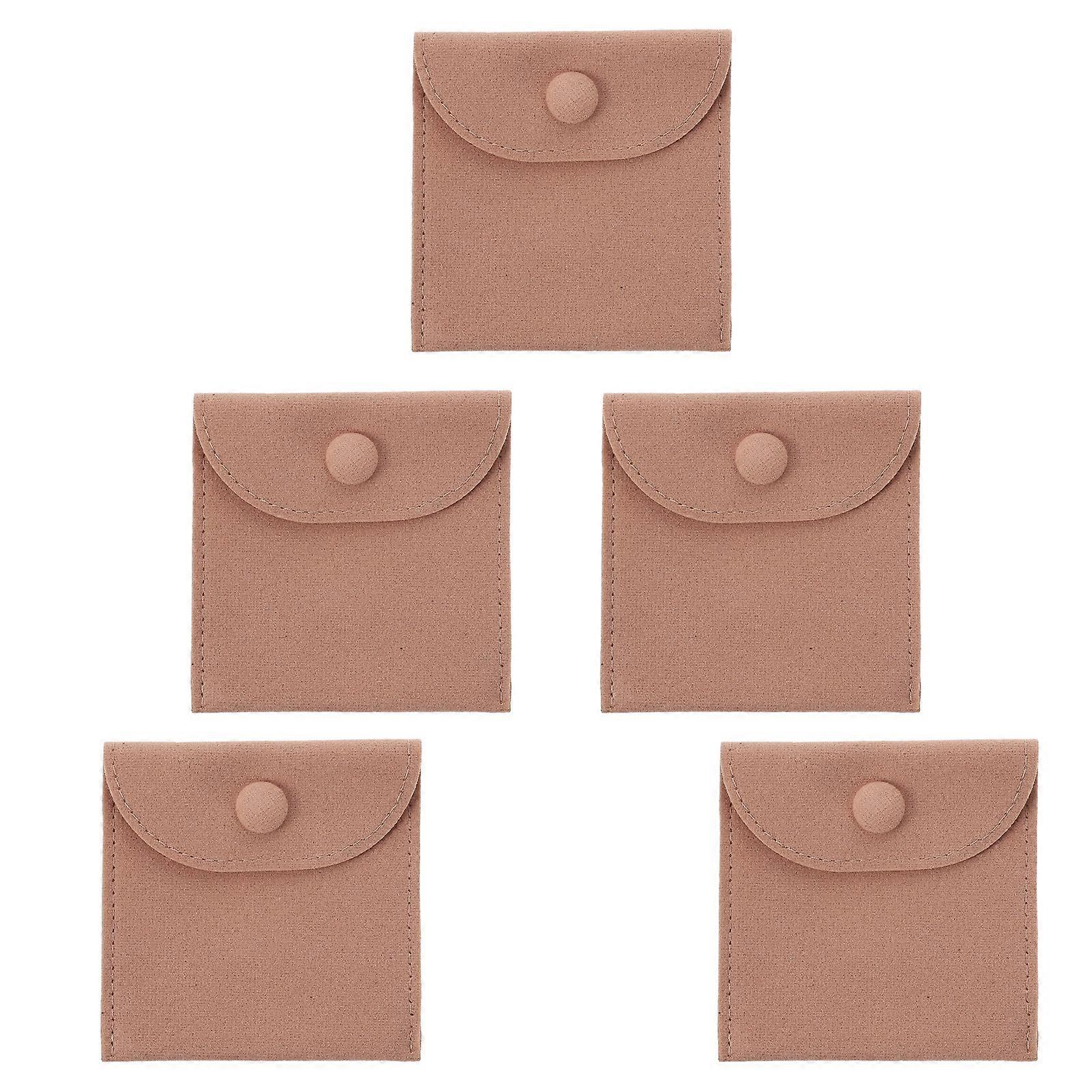 5pcs Lint Jewelry Bags Portable Small Flap Pouch for Necklace Ring (Coffee)