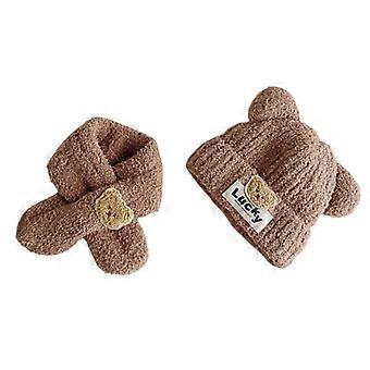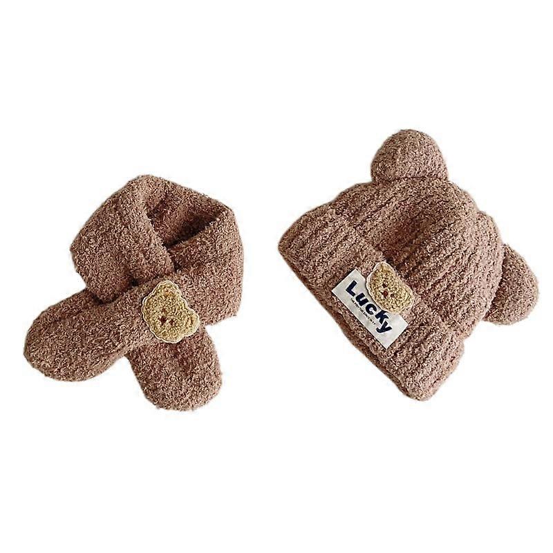 Lovely Bear PomPoms Beanie with Matching Scarf Winter Accessories for Kids Gift
