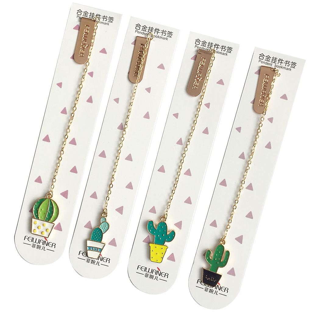 Lovely Cactus Bookmark Clip with Chain Paperclip for Writer Women Men Readers
