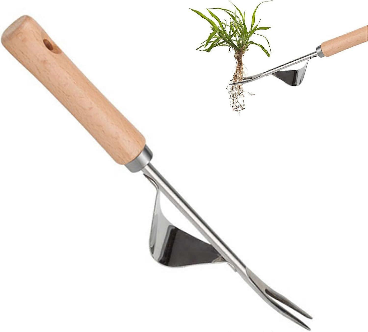 nice Stainless Steel Manual Weeder Tool 32cm Dandelion Puller Hand Weeding Tool Weed Puller Weed Puller Gardening with Wooden Handle for Weeding--4pc