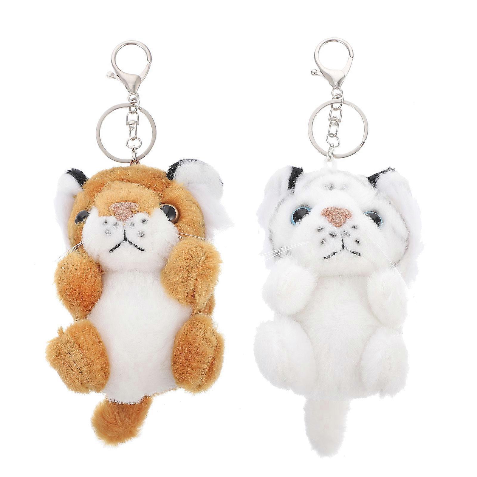 Lovely Tiger Pendant Simulated Tiger Doll Home Decor Children's School Bags 6.5X10CM PP Cotton Brown with Beads 2Pcs