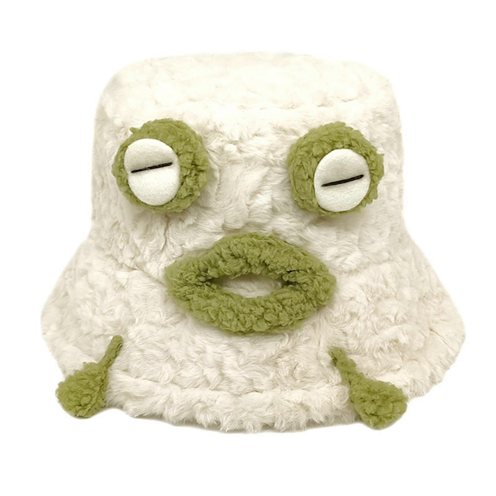Lovely Knit Beanie Cap Thick Plush Bucket Hat for Skiing Hiking Universal Size Lady Windproof Cartoon Eyes Soft Beanies White