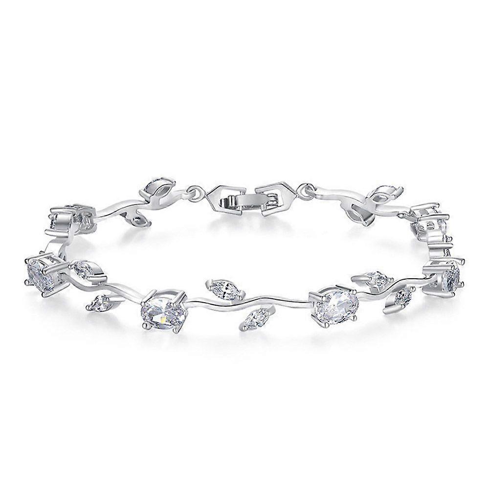 Lovely White Gold Plated AAA Cubic Zirconia Gemstone Flower Vine Bracelet for Mothers Girls Girlfriends