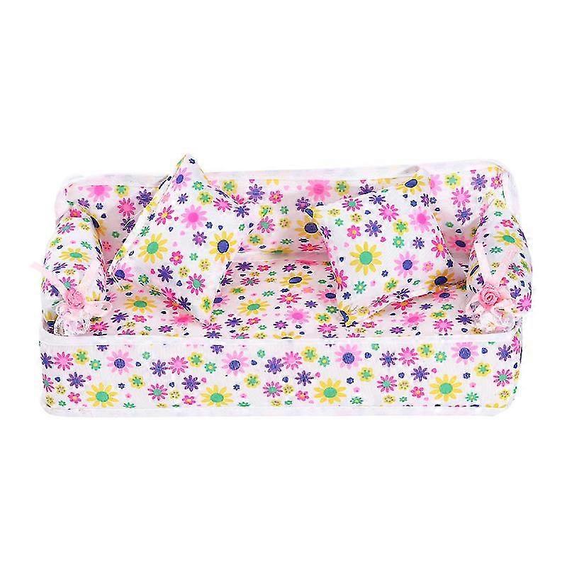 lovely miniature mini house furniture flower sofa couch with 2 cushions for dolls (random color)