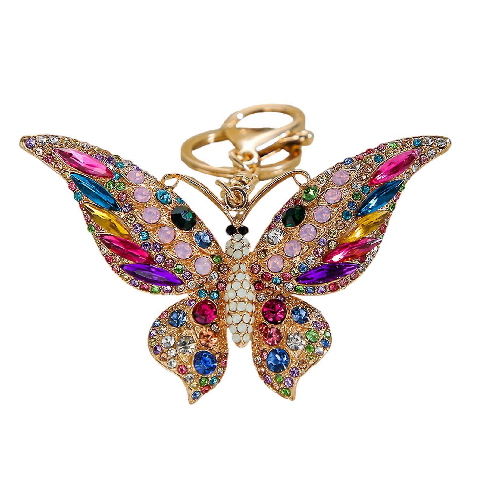 Fashion Rhinestone Butterfly Charm Keychain Lovely Ornament Women Car Keyring Backpack Handbag Charm Pendant Key Holder mixed colors