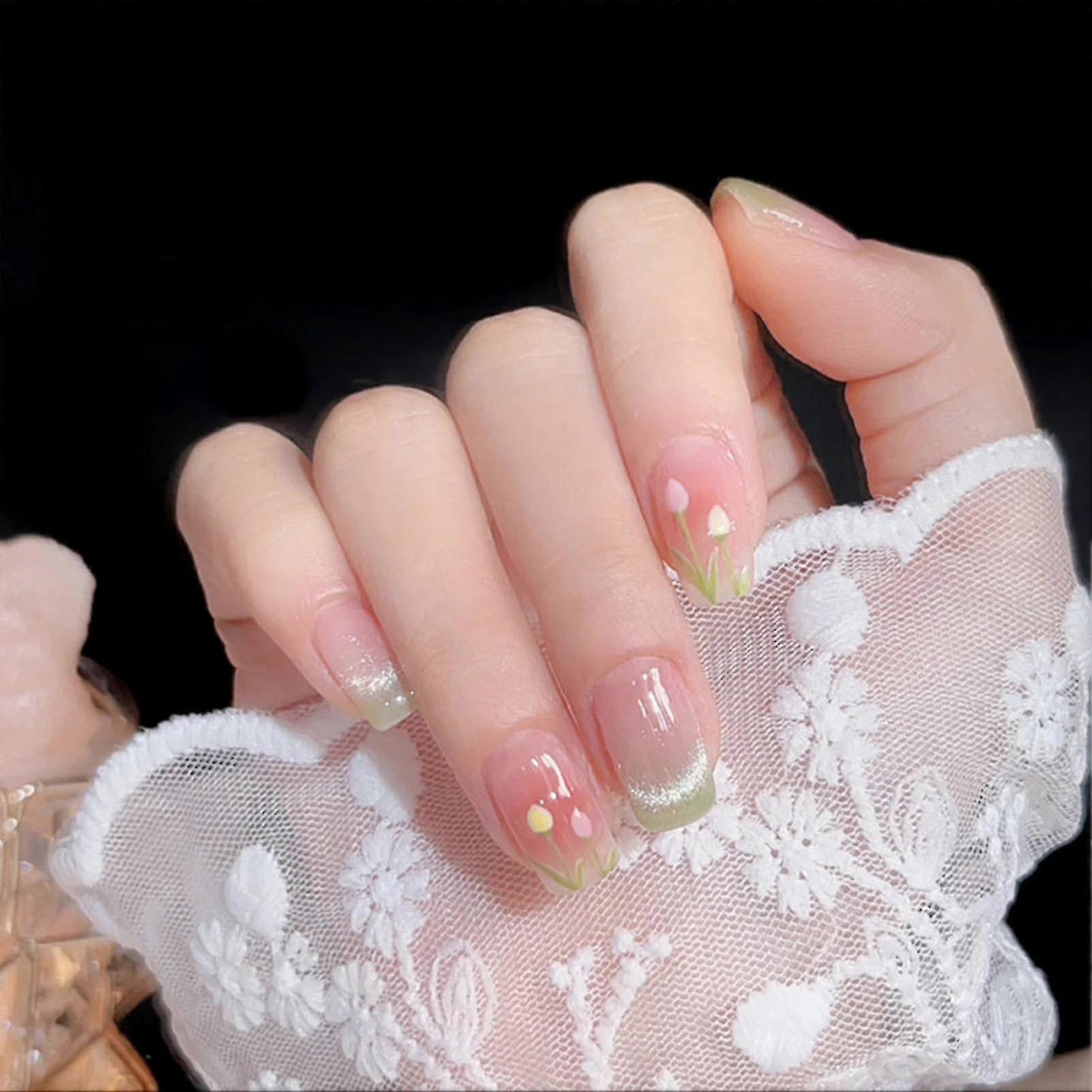 Lovely Spring Flower False Nails Comfortable Wear False Nails For Shopping Traveling Dating