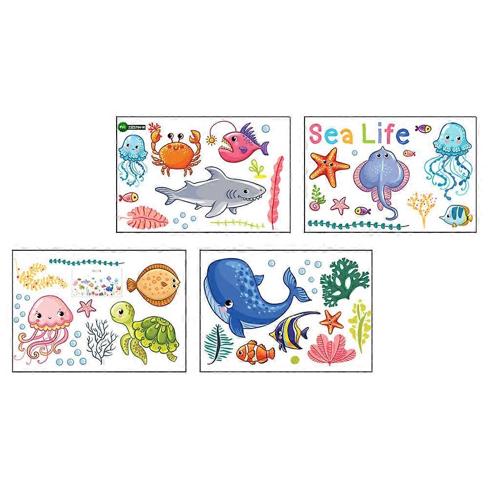 Lovely Underwater World Animal Wall Stickers 4 Sheets for Room Nursery Playroom Decoration Easy Apply Remove Fun Sea Animal Designs