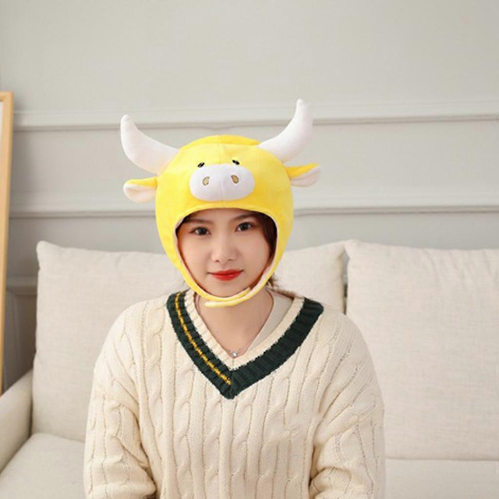 Lovely Cartoon Cow Animal Plush Hat Winter Warm Headgear Cap 3D Ears Horns Funny Stuffed Headwear Cosplay Costume Props red cow headgear