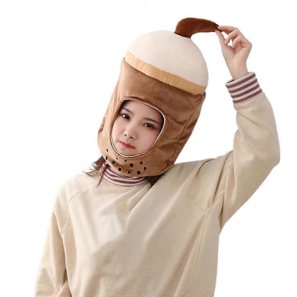 Lovely Cartoon Milk Tea Shaped Plush Hat Funny Beverages Drinks Stuffed Toys Headgear Warm Earflap Cap Cosplay Performance Party Photo Props Cs