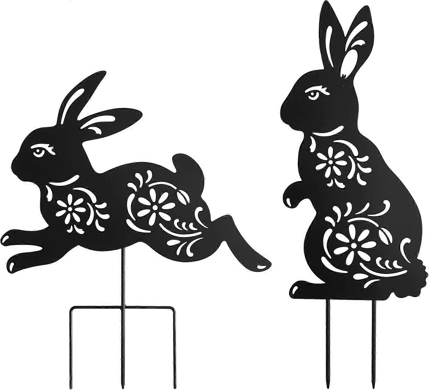 nice Tall and Dwarf Rabbits Set of 2, Spring Garden Wrought Iron Rabbit Metal Insert, Decorative Garden Swing