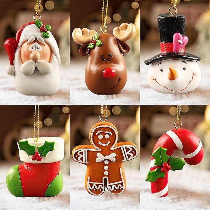nice 6 Pieces Painted Christmas Tree Decorations - Vivid and Cute 3D Resin Hanging Ornaments | Gingerbread Man Candy Cane Snowman Santa Claus Elk