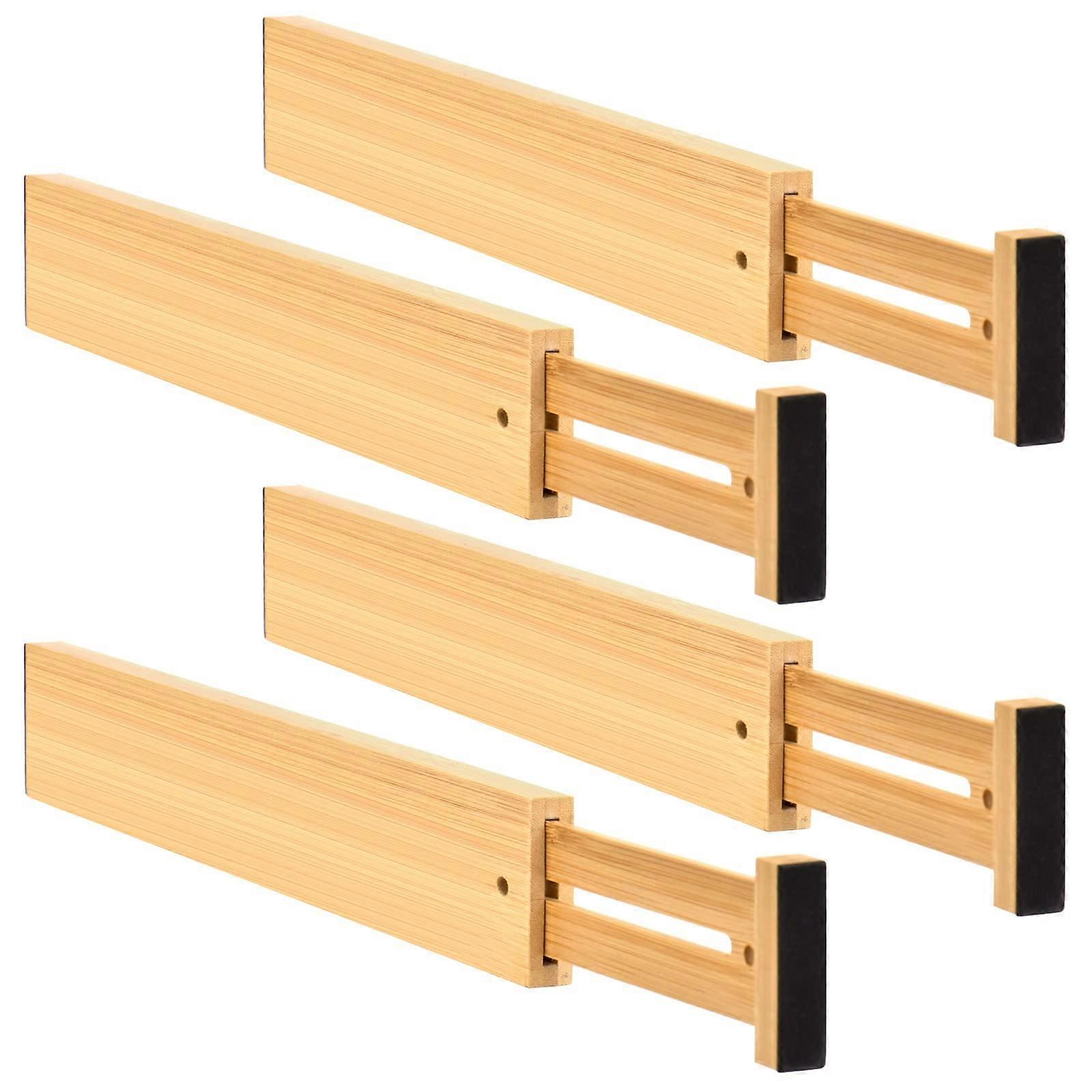 nice 4 Pack Adjustable Bamboo Drawer Dividers (17-22 Inch), Spring Loaded Drawer Divider System, for Kitchen, Clothes, Bathroom, Baby Drawer, Tools