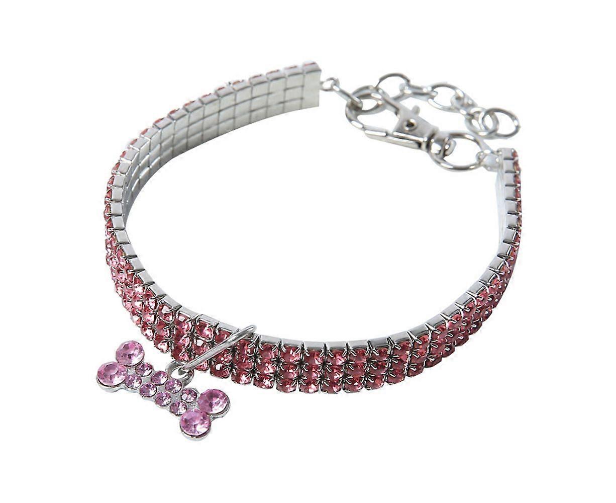 Amazing 3 line rhinestone necklace pet cat dog collar Bling Rhinestone-pink-S