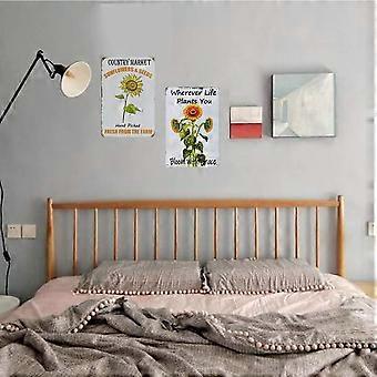 Rustic Sunflower Decor Vintage Tin Bar Sign Farmhouse Wall Home Decor Garden Decorative Plaque for Living Room, Bedroom or Bathroom 2Pcs-8X12Inch
