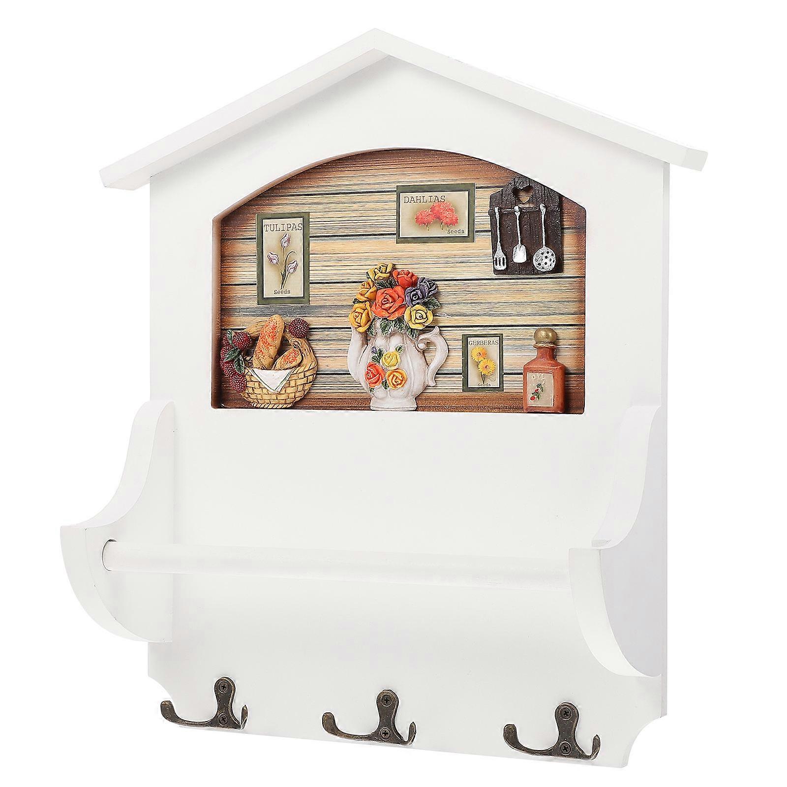 Rustic Towel Hooks Wooden Wall Mount Hanger for Bathroom Kitchen White Wood Material Key Storage 1Pack