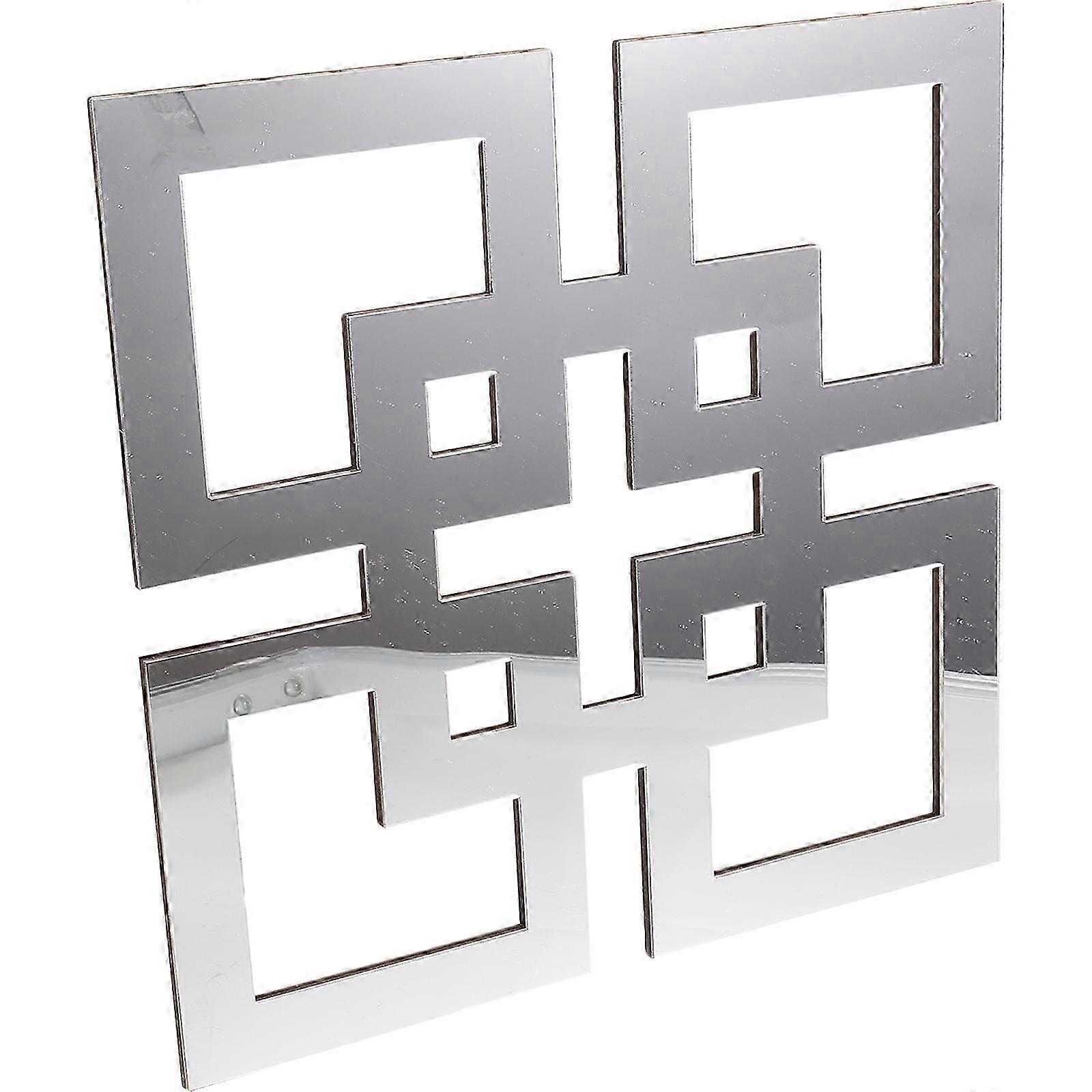 Rustic Basswood Wall Art Decal - Hollowed Square Wood Decor, 30x30cm, Silver