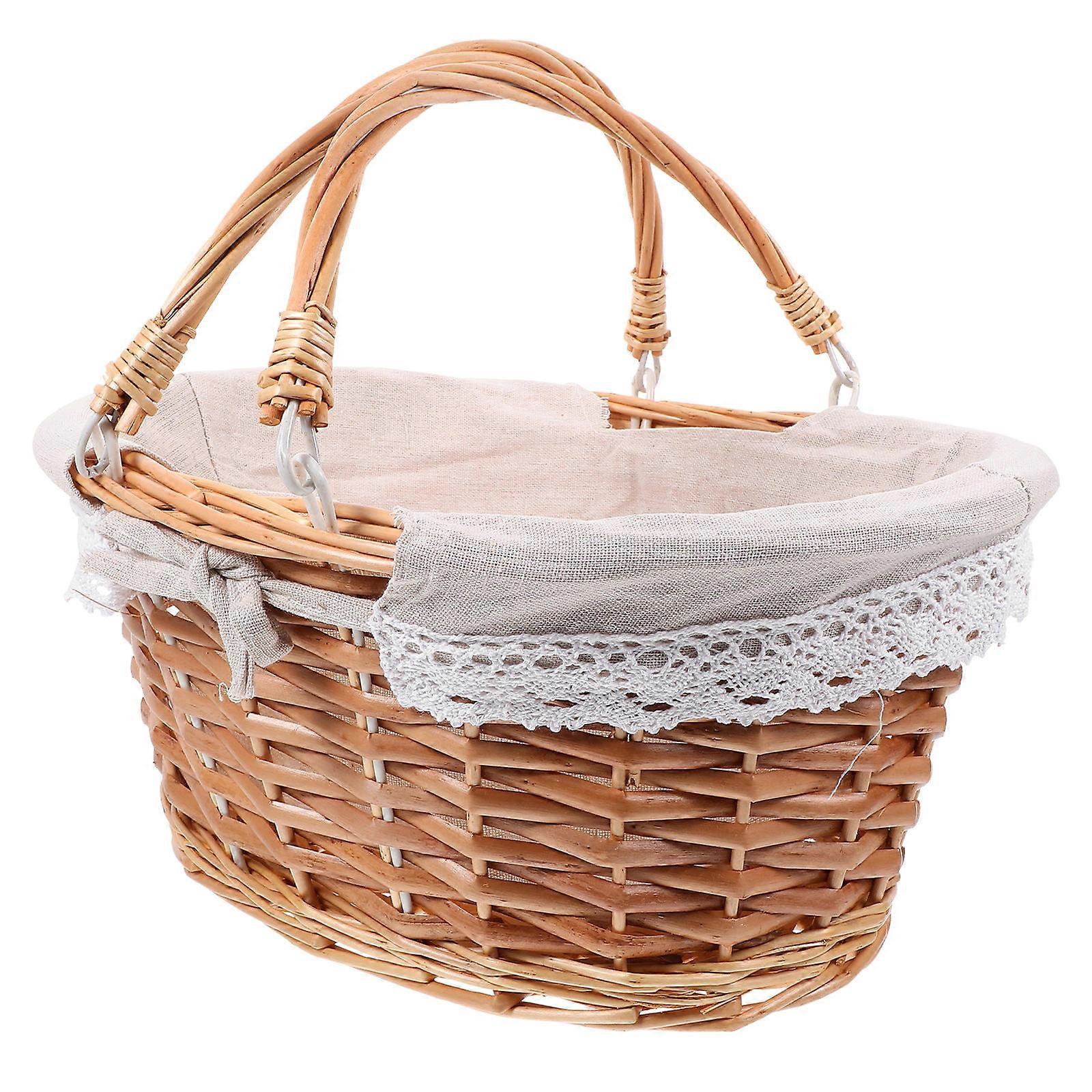 Rustic Handheld Egg Basket Fruit Basket Outdoor Activities Storage Container 36.00X31.00X18.00CM 1Pack