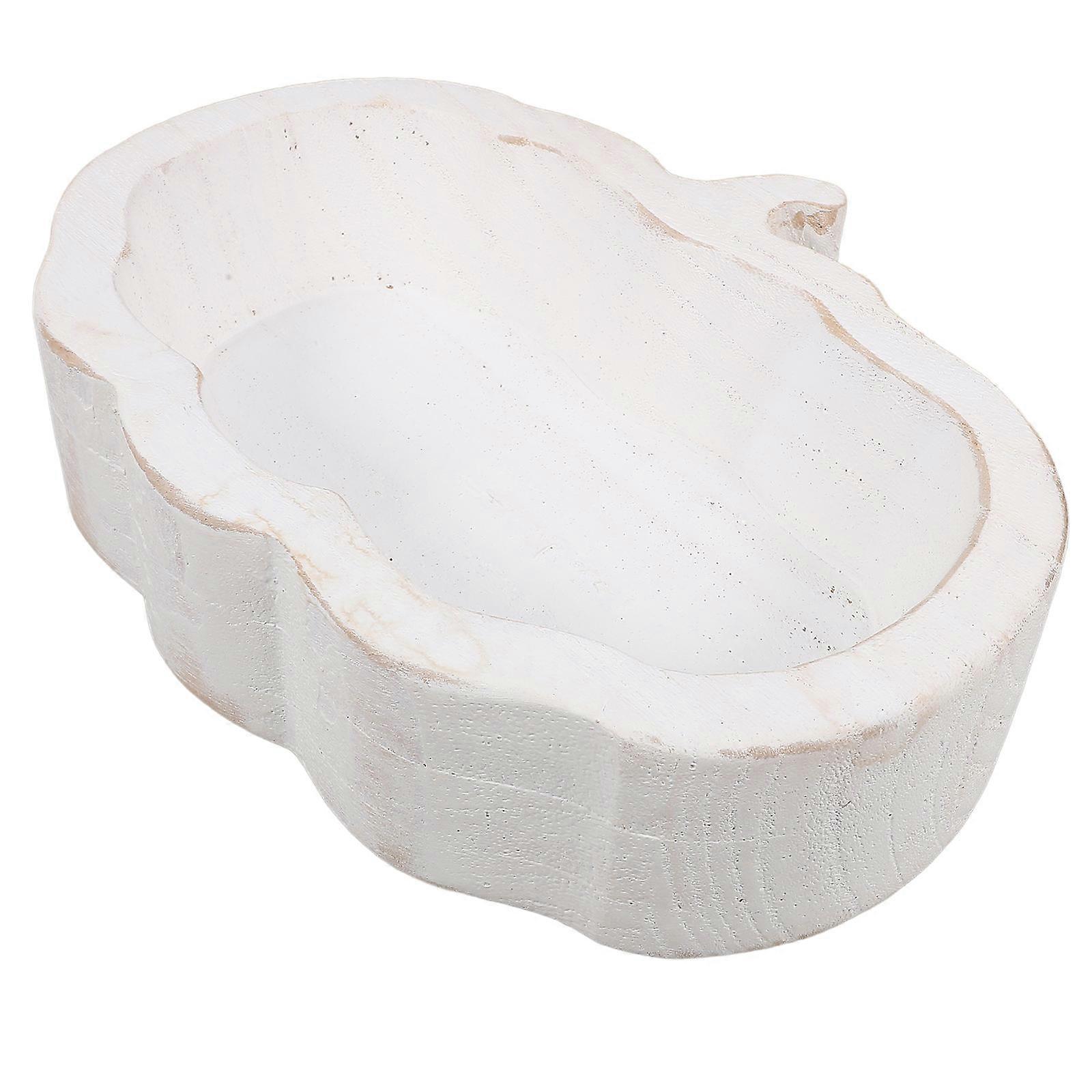 Rustic Bowls Pumpkin Shaped Wood Bowl Dessert Holder Hotels 19.50X14.50X5.00CM White 1Pack