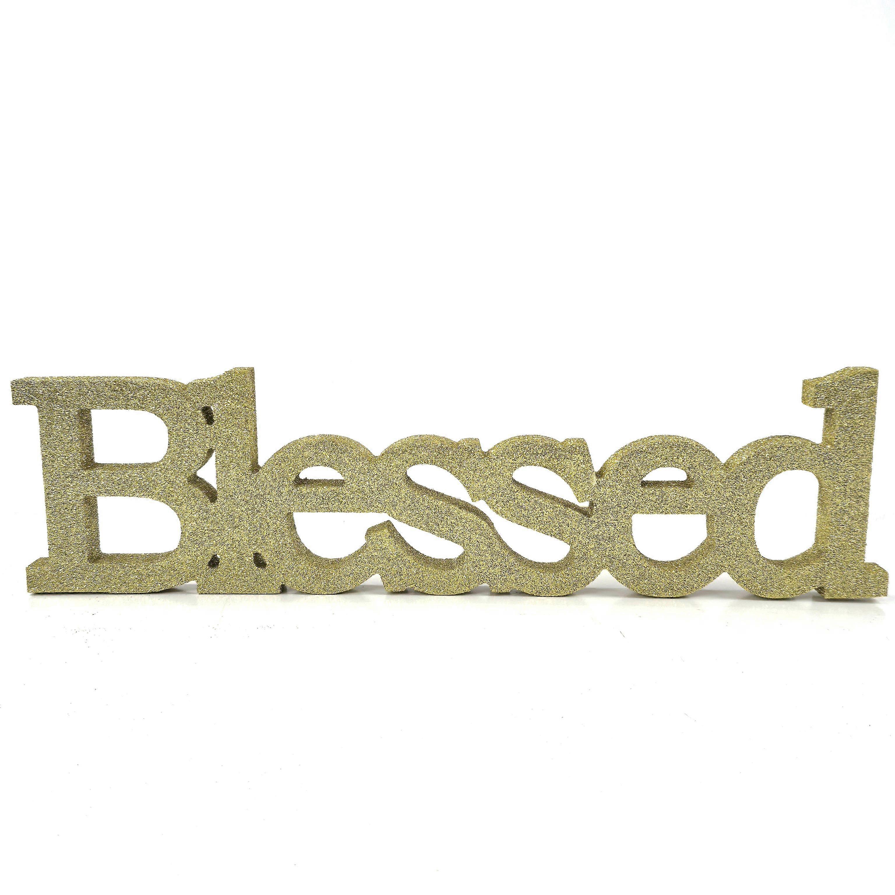 Rustic Blessed Wooden Letter Sign: Glitter Word Cutout Sign - Elegant Tabletop Decoration For Holiday Wedding Home And Festive Gatherings