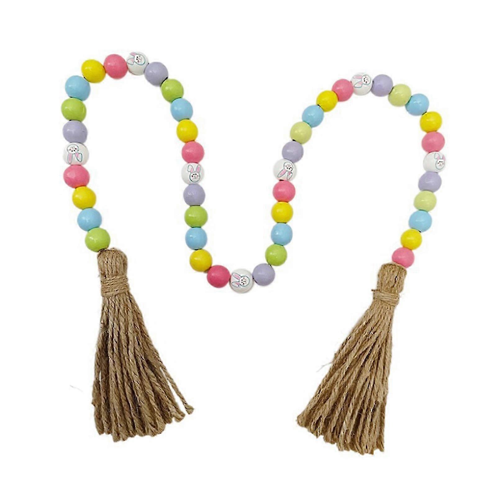 Features: DURABLE: Easter Wood Beads are made of natural wood material with linen tassels, fine workmanship, not easy to break, crack or fade. Classic Design: Wood Bead Pendants feature classic easter element with bright colors and easter themed designs. Festive Decoration: When hung on wall or decorated on tray, it can add for rich Easter atmosphere to your home. Applicable Scenes: Easter Beaded Decorations can be great addition to tiered trays, fireplaces, mantles, tiered trays, table centerpieces, doorknobs, stairs, for window, wall. Great Gifts: They can be given to family or friend as holiday gifts, party decoration gifts, beautiful decorations bring different style to their home, and are good way to for shows your greetings and congratulations. Specifications: Material: Wood Total Length: Approx. 85cm/33.46inch Wood Bead Size: Approx. 16mm/0.63inch Length of Tassel: Approx. 12cm/4.72inch Package Includes: 1x Wood Bead Garland note: Please allow 1-2cm errors due to manual measurement, make sure that you do not mind before you order. Due to the difference between different monitors, the picture may not reflect the actual color of the item.