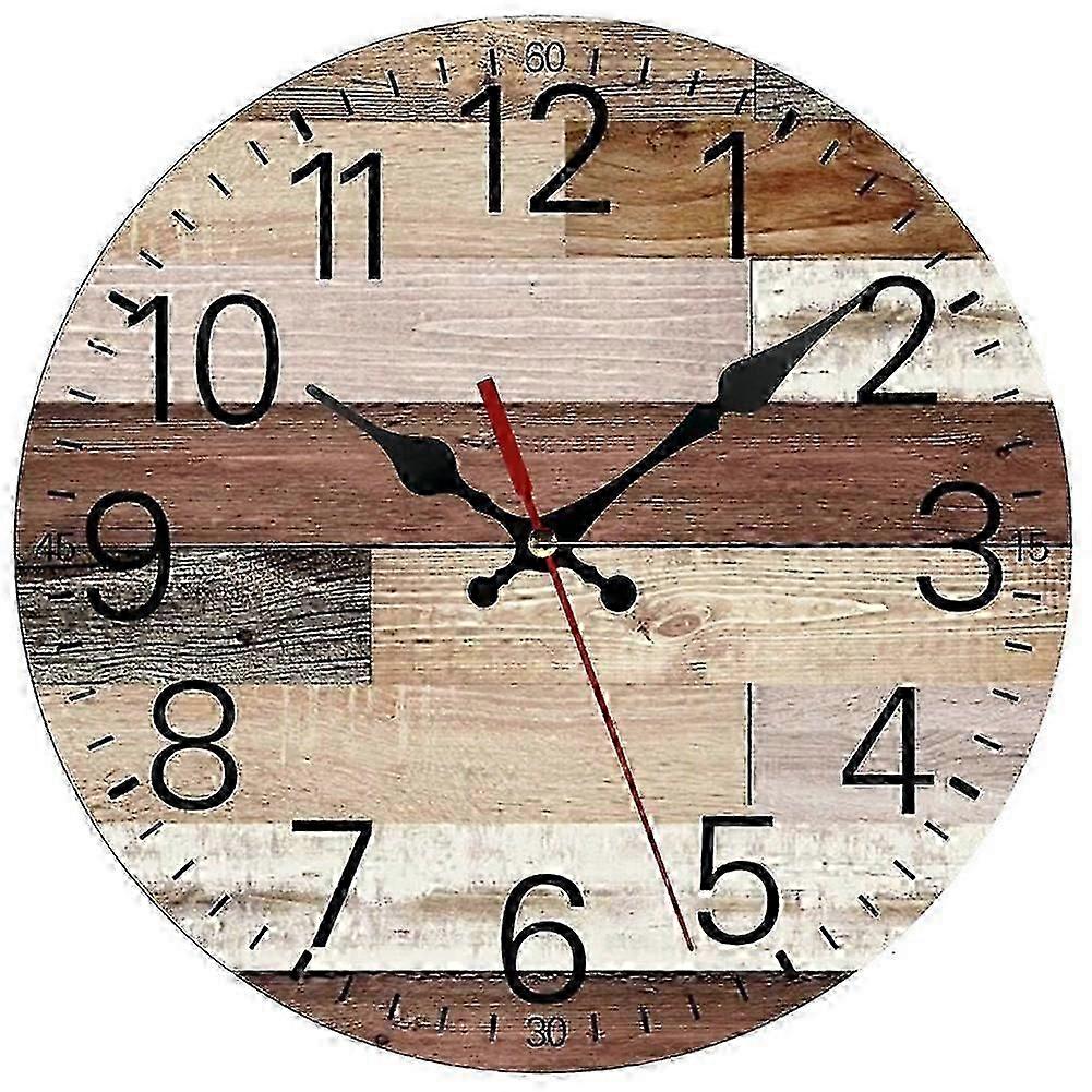 Rustic 12 Inch Round Wooden Wall Clock, Vintage Farmhouse Wall Decor for the Kitchen, Living Room and Office(A)