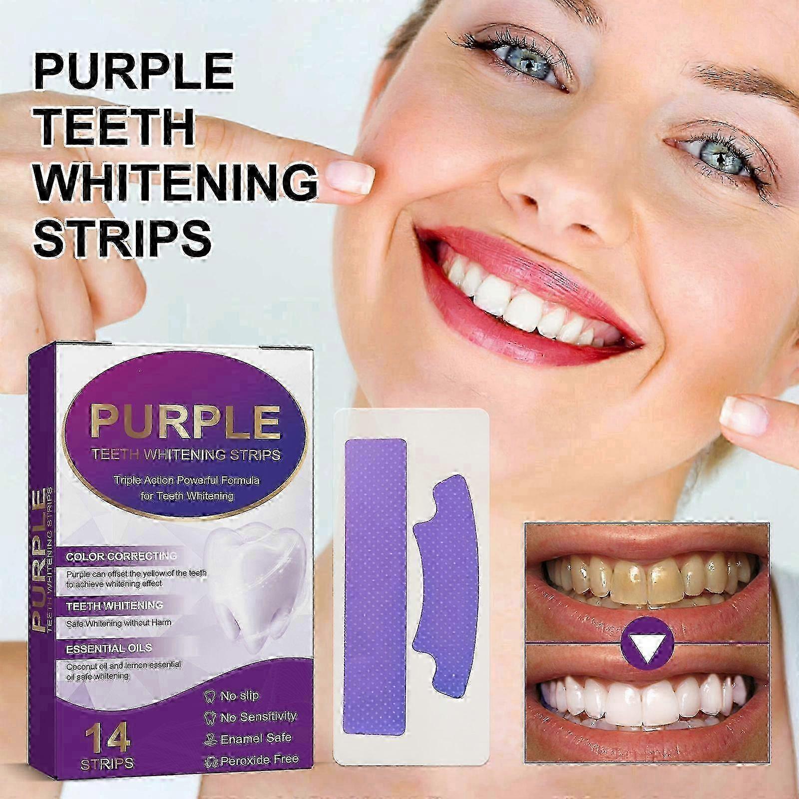 Purple Teeth Whitening Strips, Enamel Safe Teeth Whitener Color Correcting Strips, Sensitive Friendly Teeth Whitening Strips