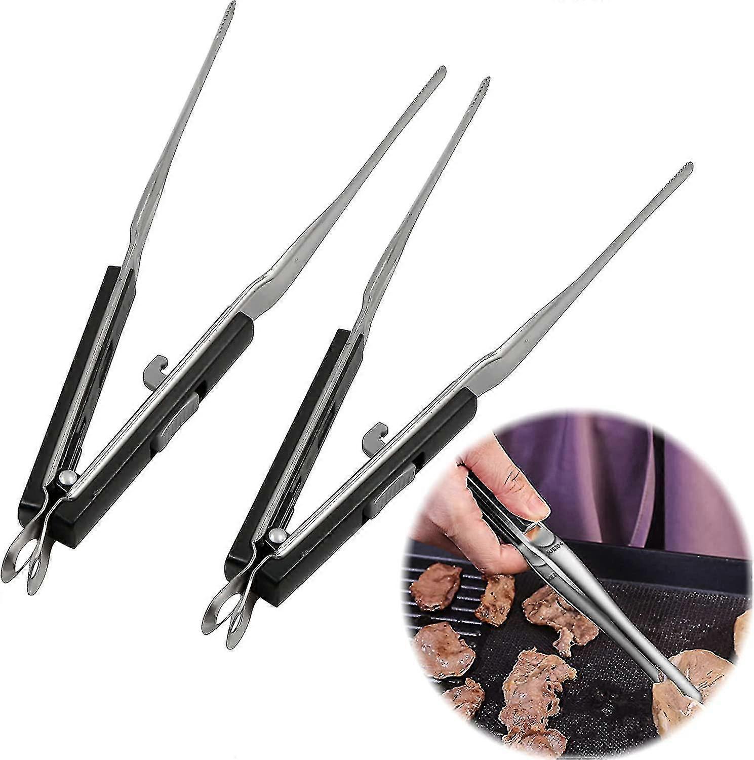 2 Pieces Kitchen Tweezers With Fine Prongs - Cooking Tweezers Stainless Steel With Switch Chuck