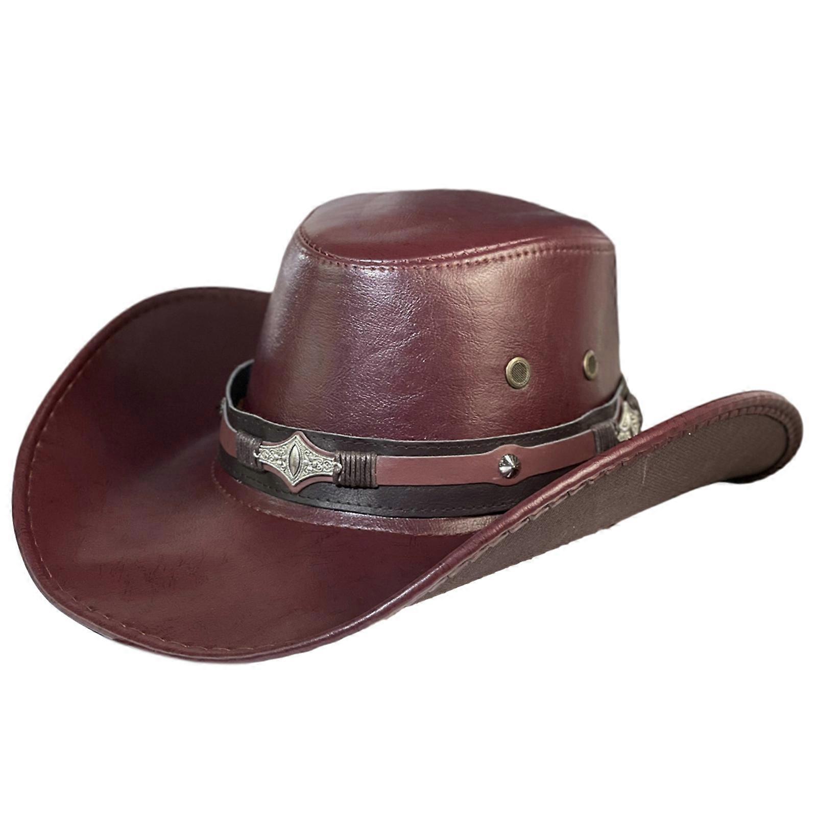 Gentleman Rolled Brim Cowboy Hat for Casual Outdoor Elegant Lady Trilby PU Church Hat Banquet Photography Hat for Adult Claret