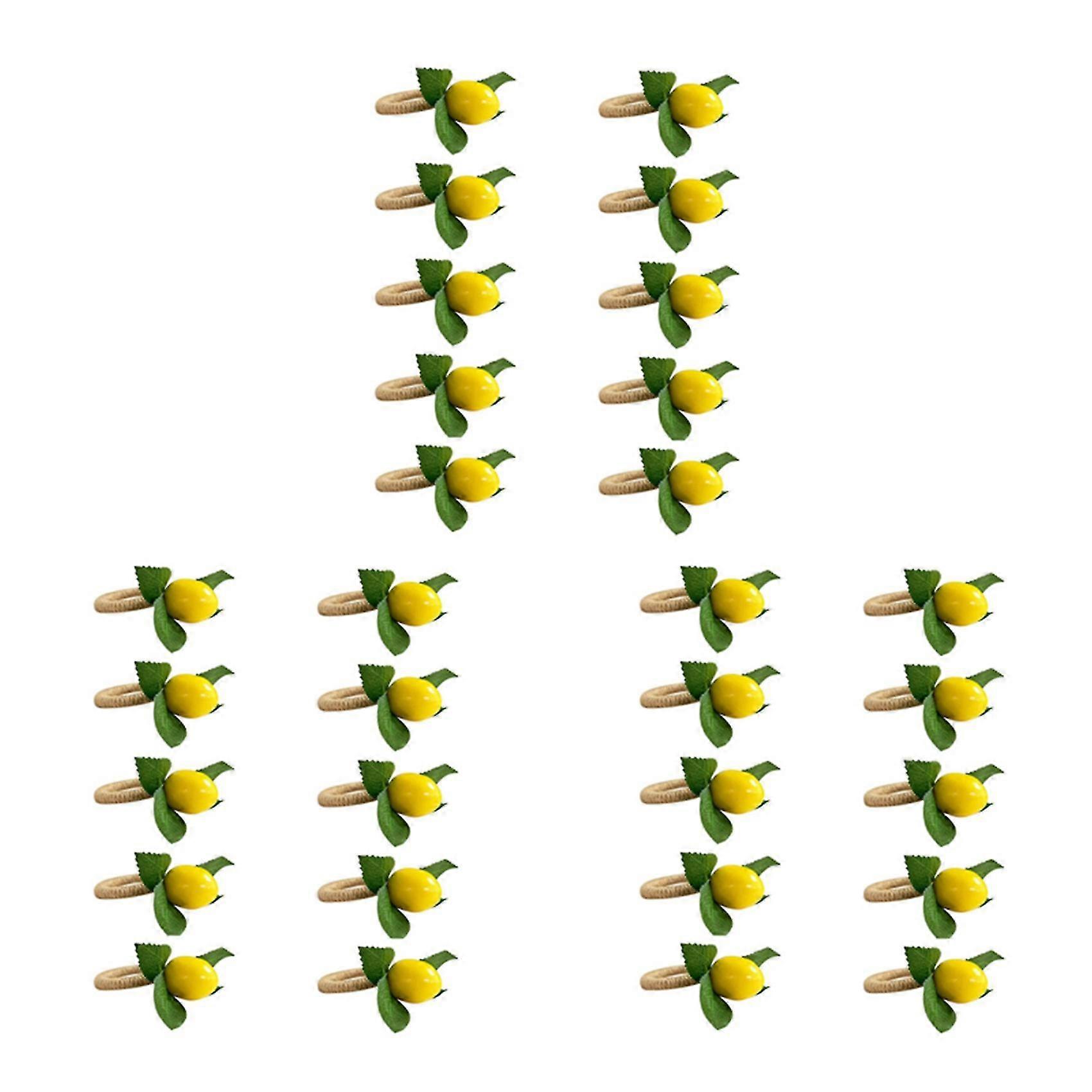 30pcs Handmade Napkin Rings Yellow Faux Lemon With Vine Napkin Ring For Wedding, Dinner Party, Banq