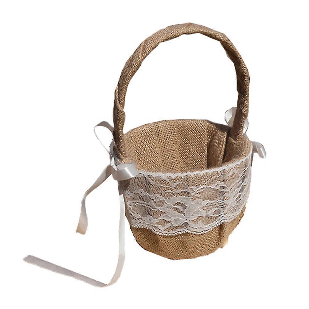 Portable Burlap Flower Basket for Weddings, Parties & Home Decor – Handwoven Jute Floral Storage Basket with Lace Accent, Rustic Chic Style for