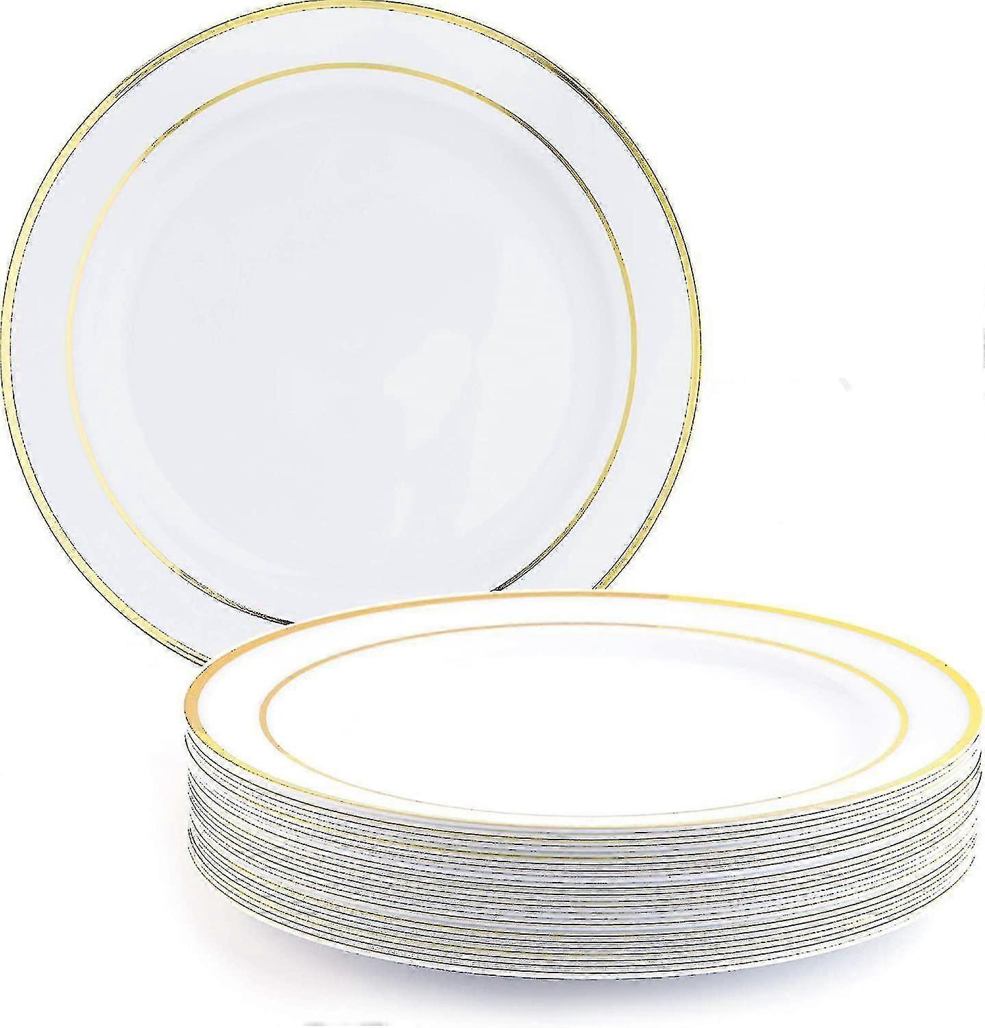 30 White Gold-Rimmed Plates for Weddings, Birthdays, Parties, 26cm Dinner Plates