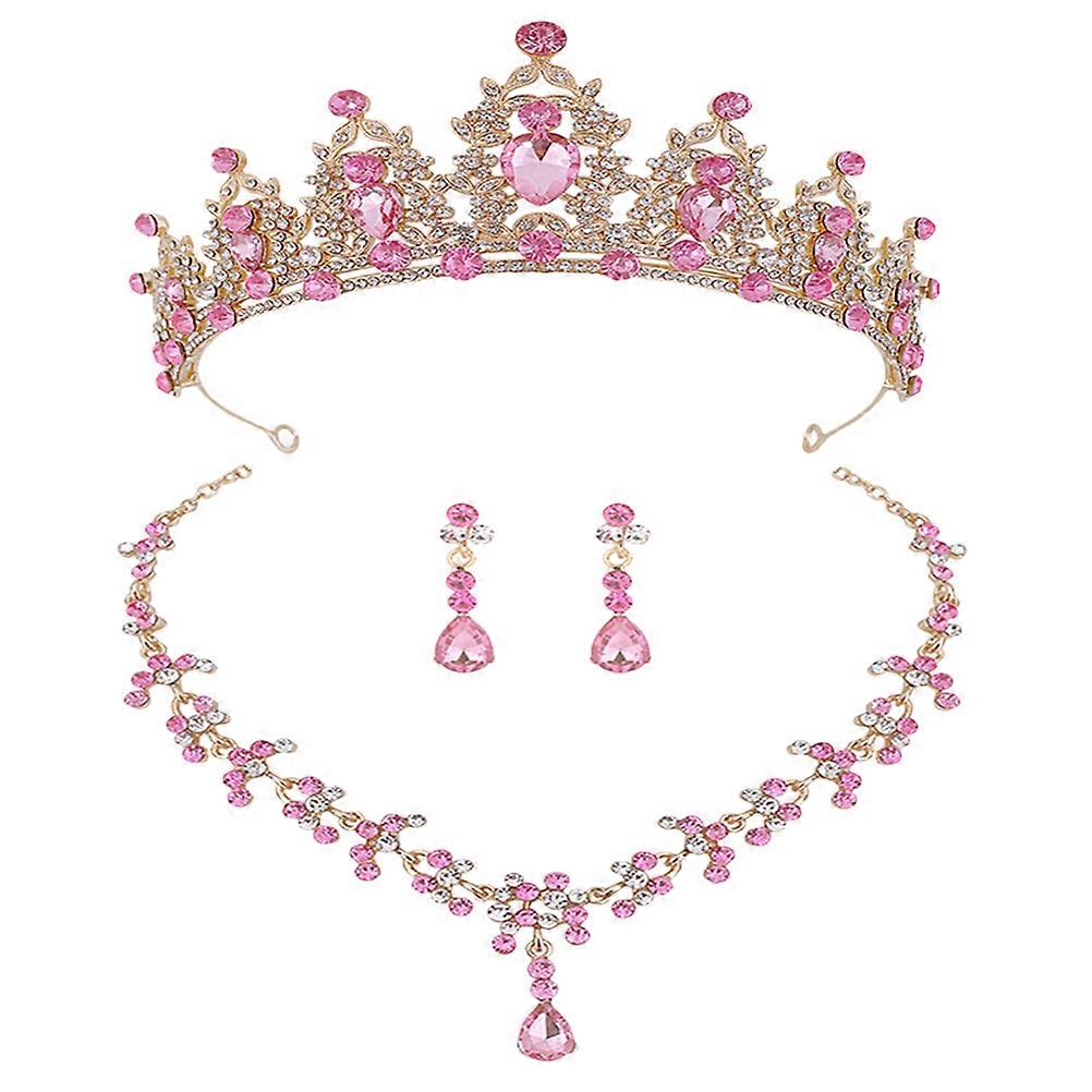 Are you looking for good-looking bridal jewelry set? Do you want to be the of the wedding scene? Are you still thinking about how to show your grace and charm? This jewelry set is the right choice for you. They are beautifully designed for weddings, parties, banquets and more occasions. Features - Color: Pink -Material:Zinc alloy, rhinestone - Size: 15.00X15.00X6.00cm/5.89X5.89X2.36in -The tiara, necklace and earrings will decorate you elegant and charming, making you more attractive. -This bridal jewelry set has elegant and gorgeous design which can make you more beautiful at the wedding. - workmanship for better visual enjoyment, can match with many style dress up. -Widely uses, suitable for birthday, prom, wedding, holiday, banquet, photo shoots, etc. -Good materials and fine craftsmanship ensure its durability and practicality. Package list: 1 x tiara 1 x necklace 1 x pair of earrings