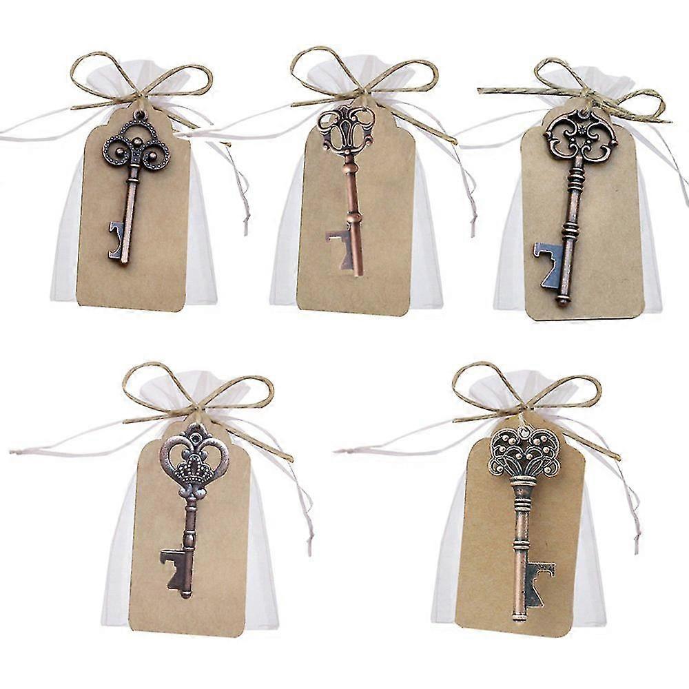 50 Vintage Style Key Bottle Opener With Greeting Bag For Wedding Favours 5 Different Styles