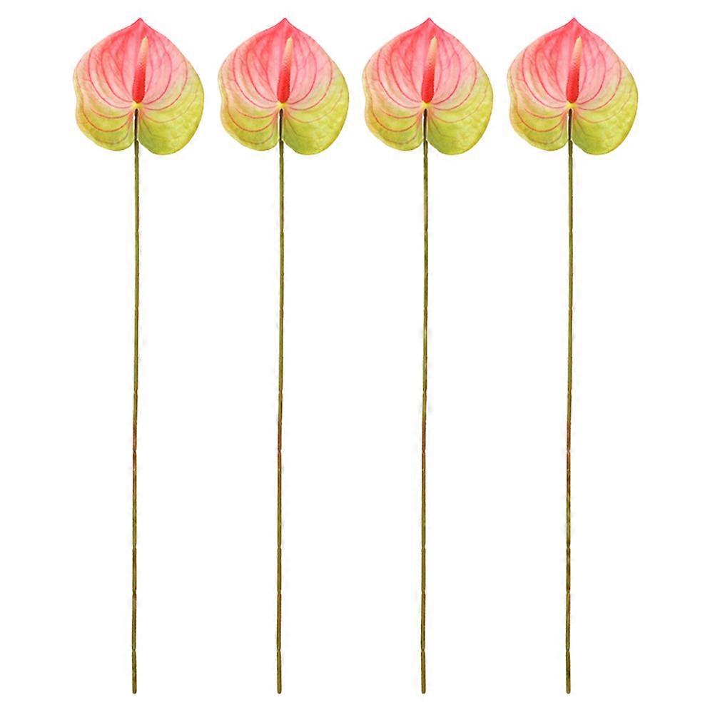Plastic Floral Stem Pink Faux Anthurium For Weddings Photo Prop 4Pcs